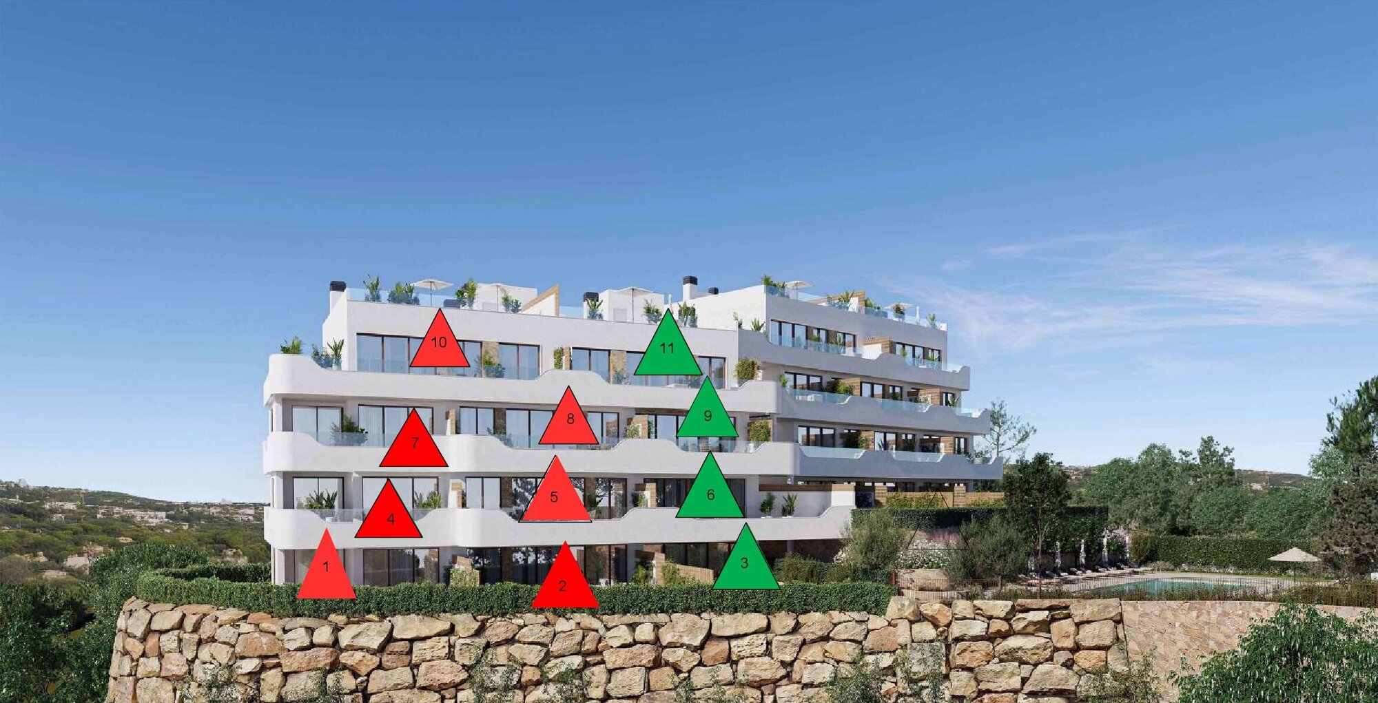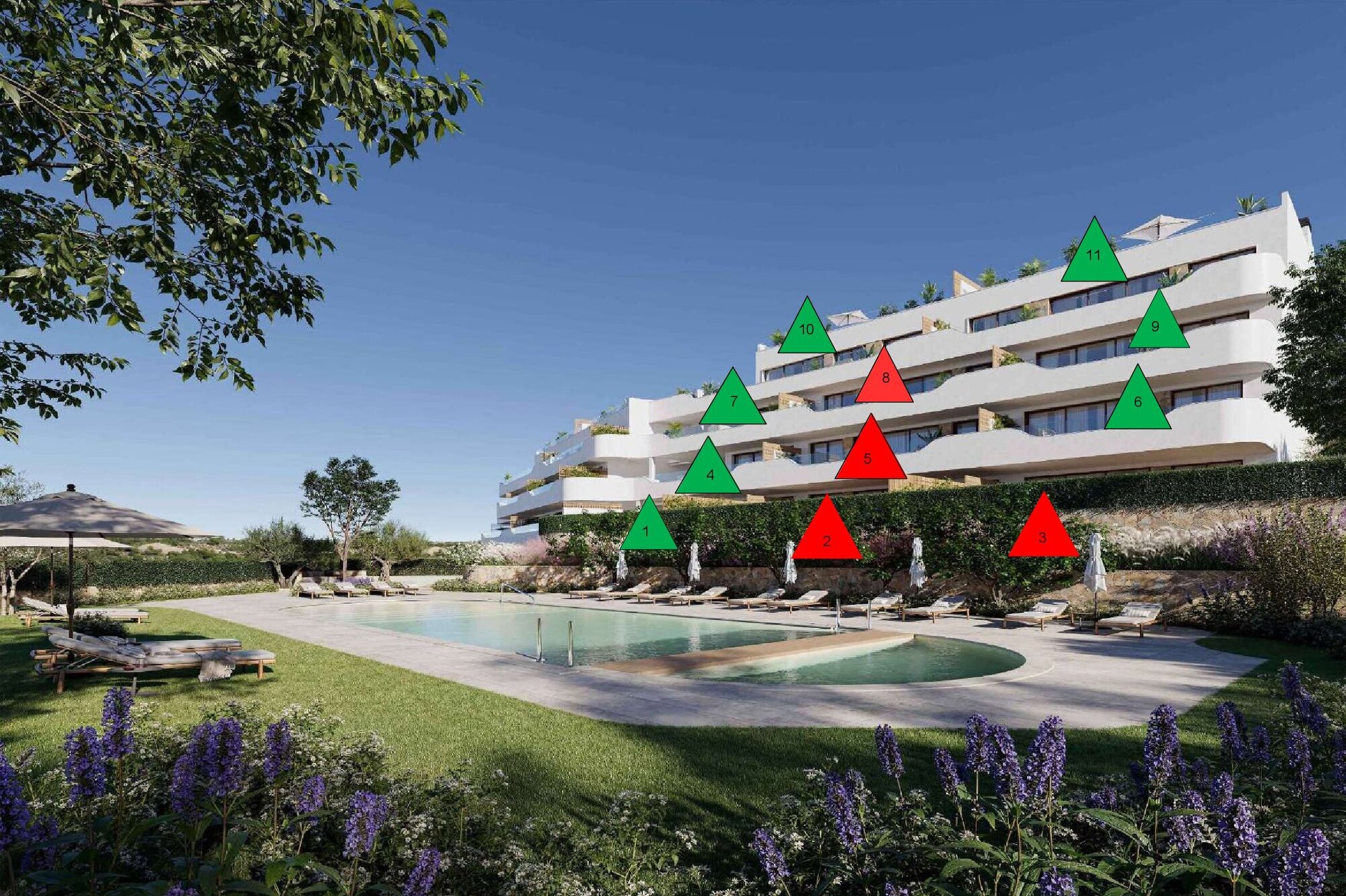 Penthouse units offer generous roof solariums with breathtaking panoramic views over the golf course and the Mediterranean Sea.