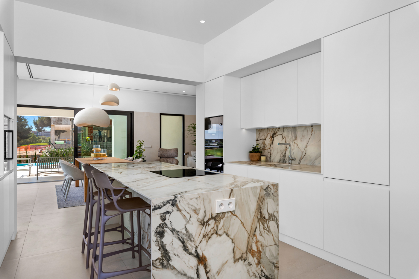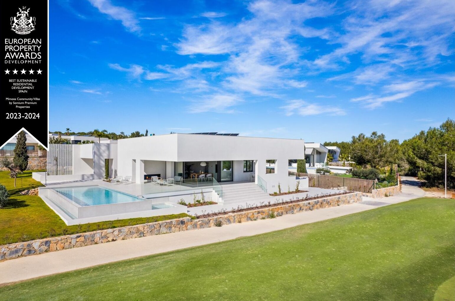 Calacatta Mimosa Villas 8 & 13 are “Well-living” FRONTLINE GOLF luxury villas offering Green Certification with 3 bedrooms, 3 bathrooms, basement and large pool in the popular Mimosa community. FANTASTIC VIEWS with a South East orientation. Conveniently located within walking distance to the Las Colinas club house, gym and sports facilities. Don’t miss out on this large impressive villa located on a prime south east frontline golf plot in the popular Mimosa community.