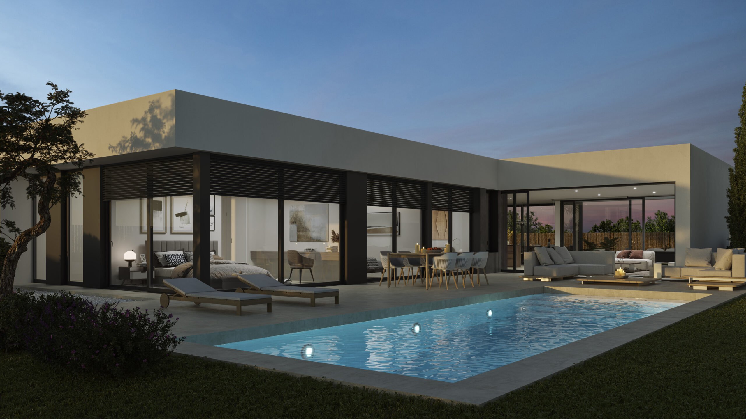 Top quality finishes throughout these villas that are situated on very good size plots. Price 1,200,000€ + taxes