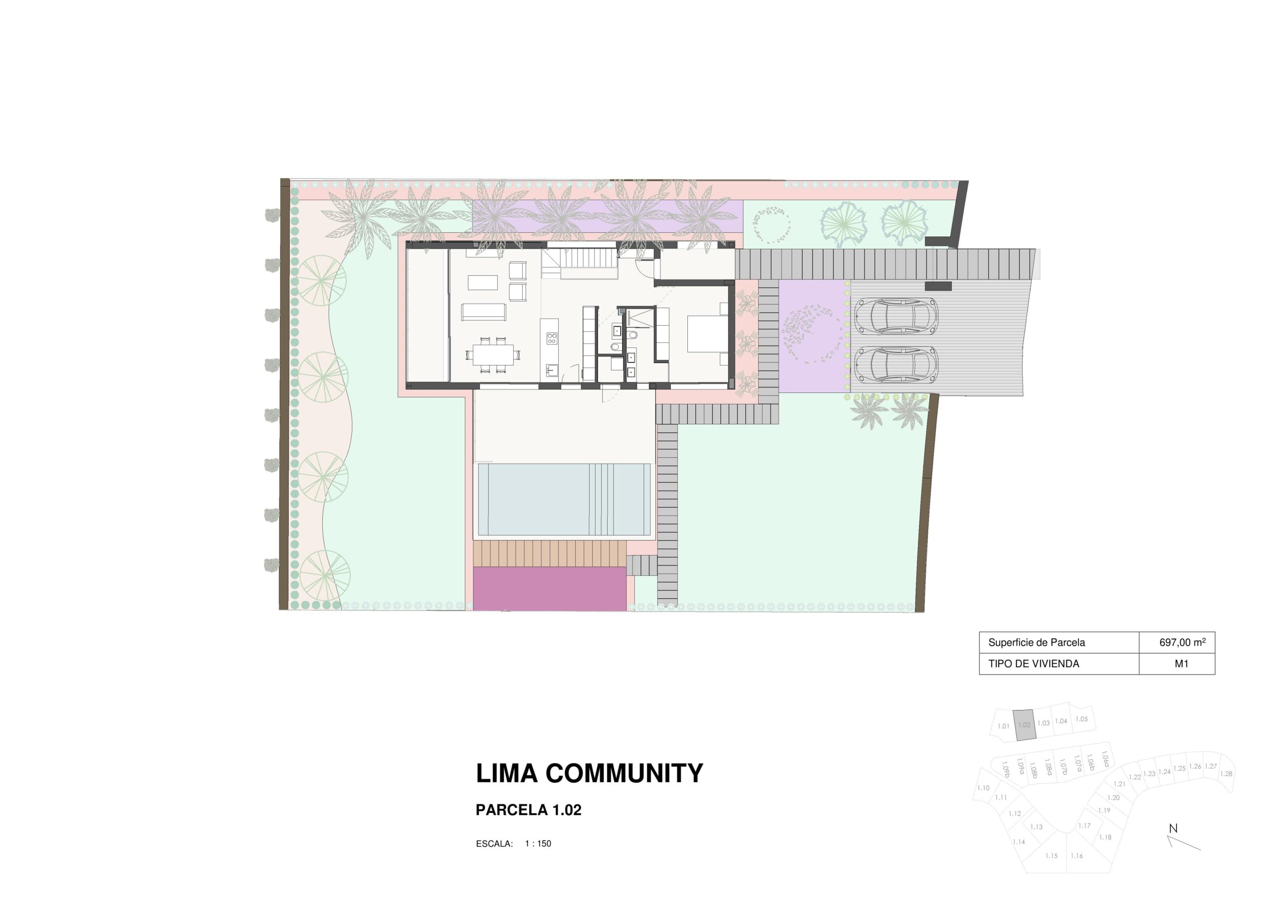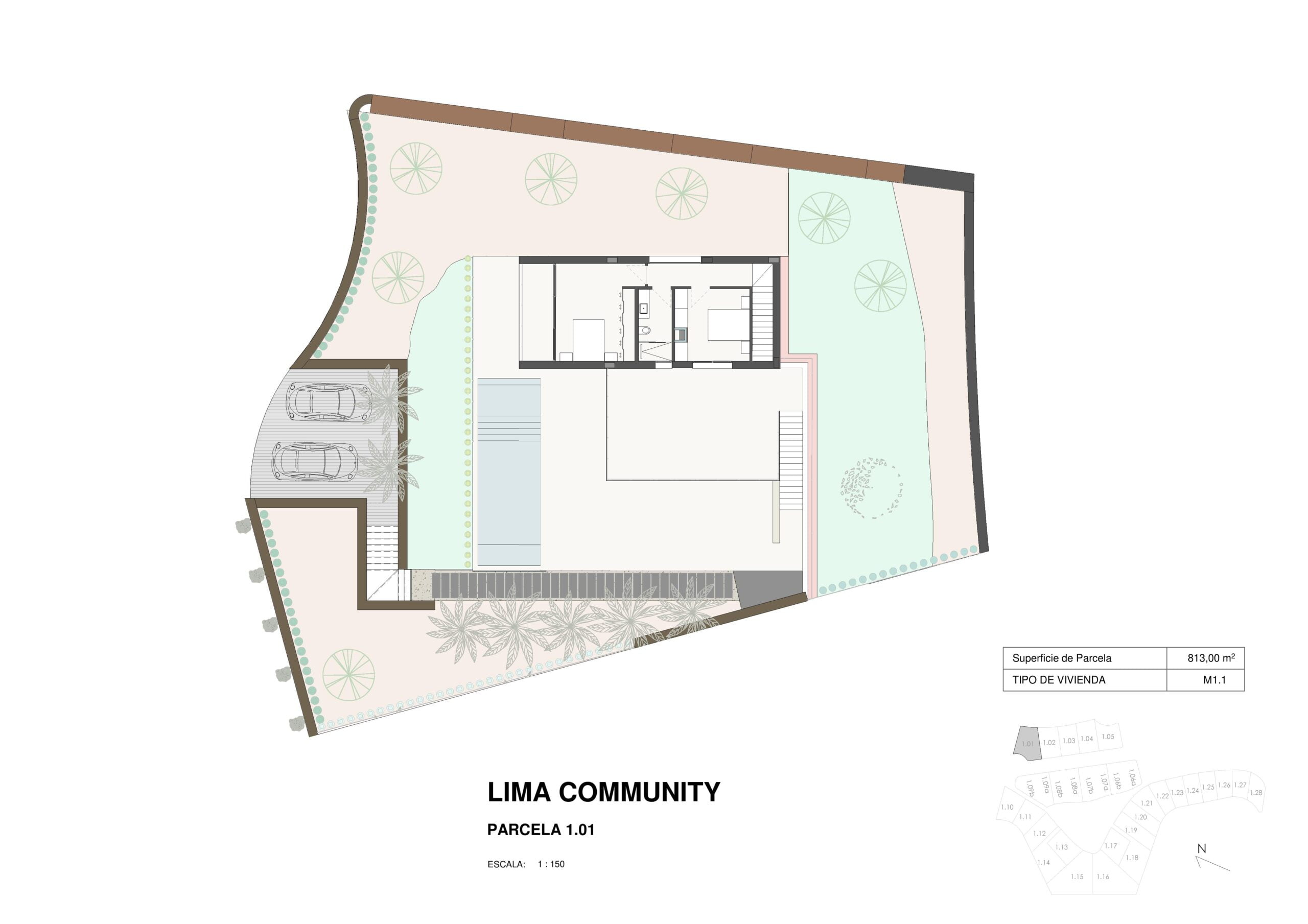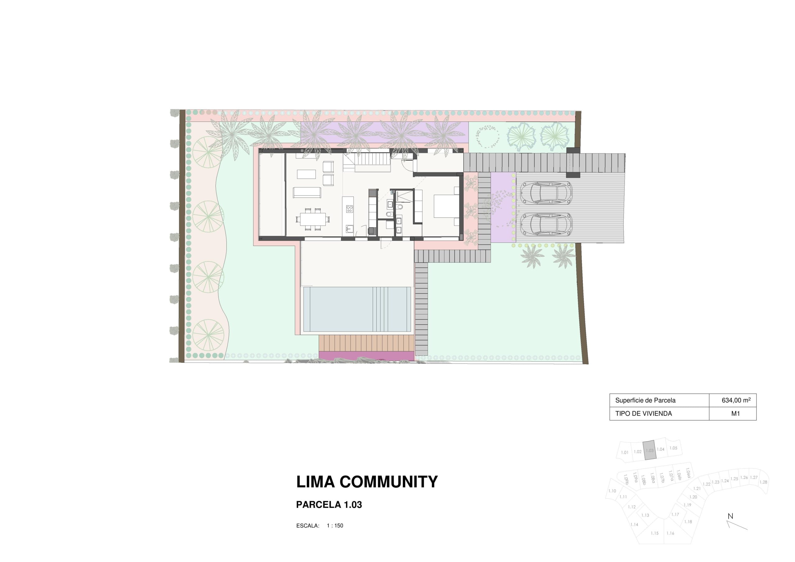 Plot NoVilla typePlot Size m²Build Size m²Terrace m²BedBathFacingPrice € +iva