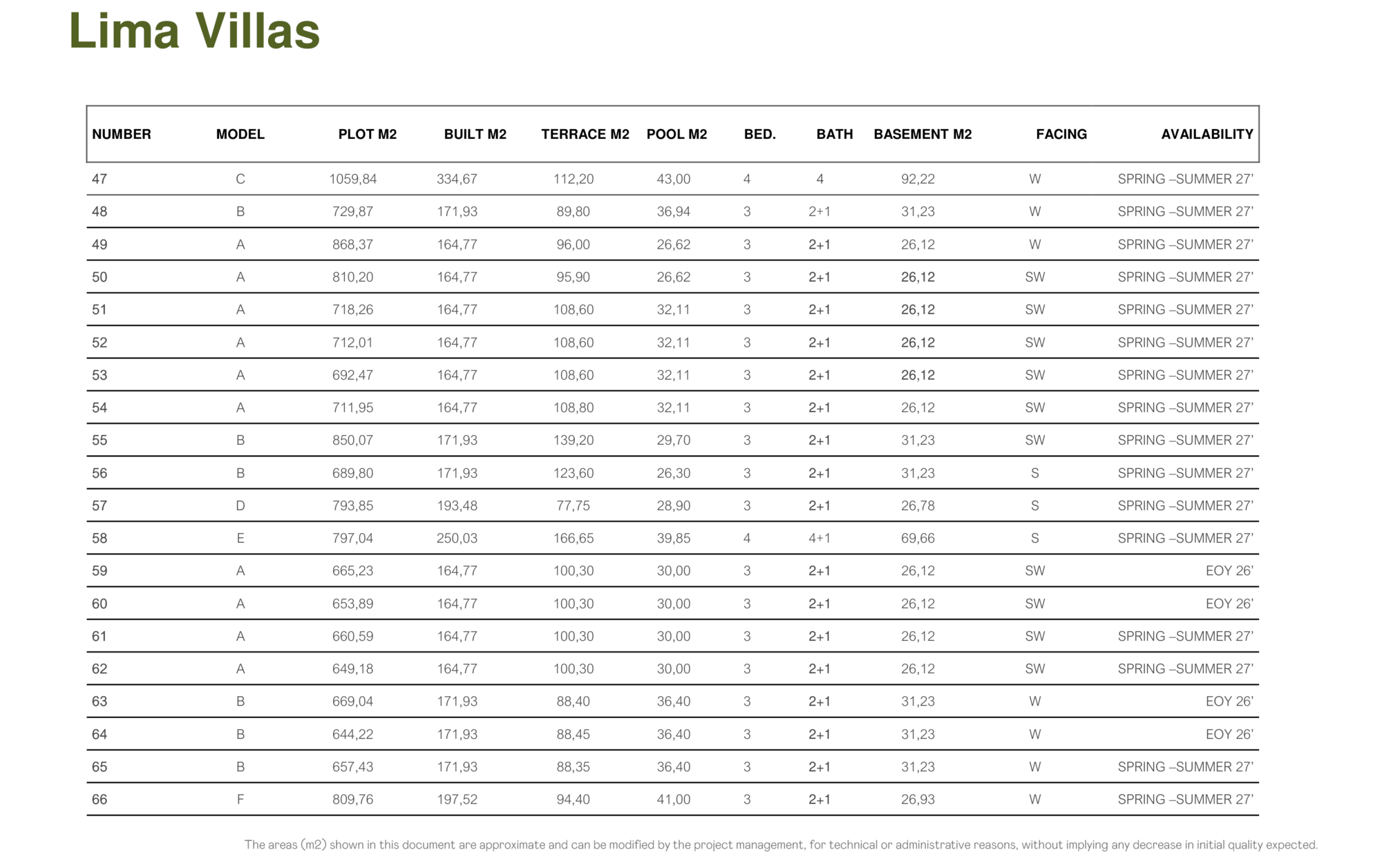 The villas are available in 3 and 4 bedroom layouts and feature: