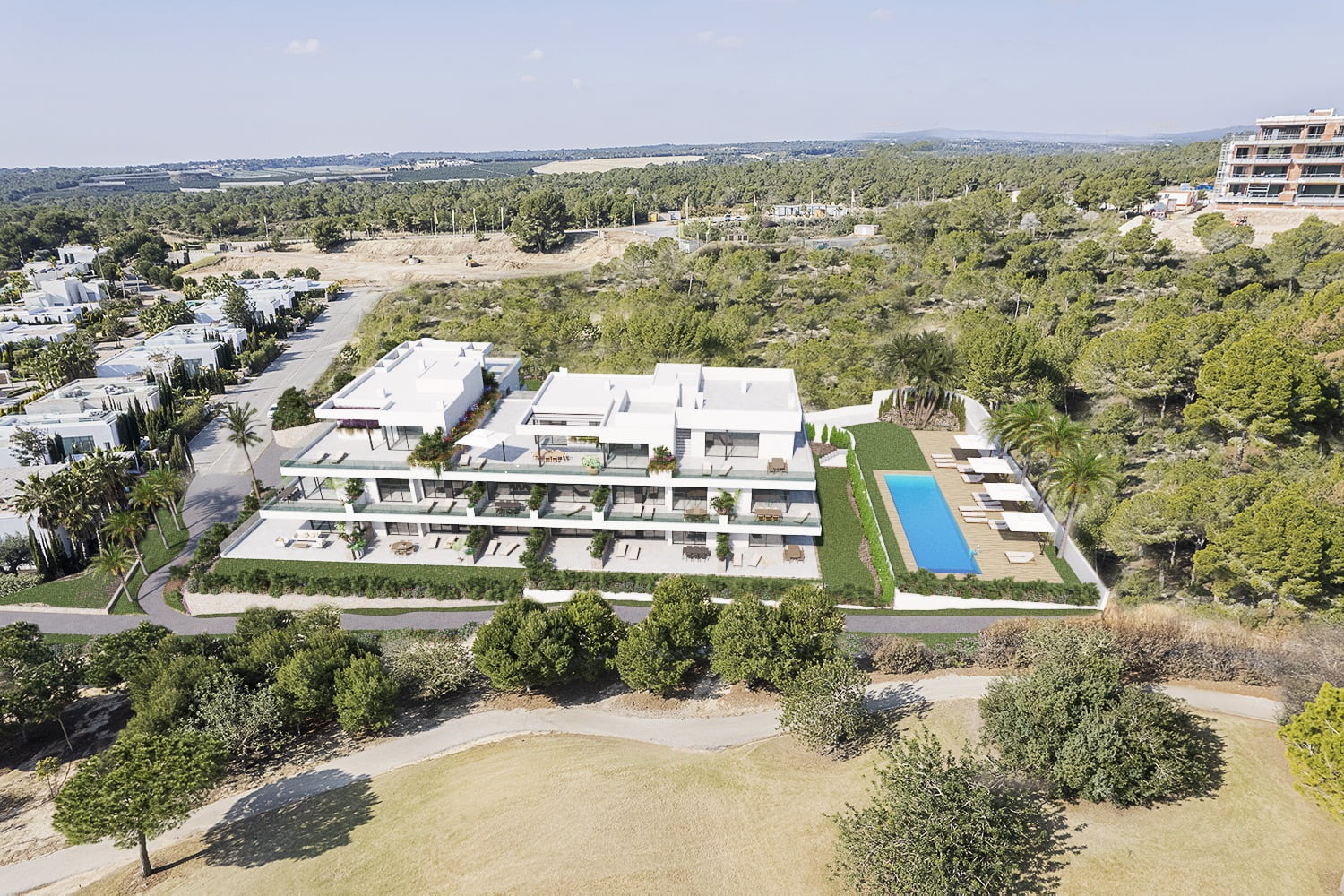 The popular Limonero community in Las Colinas Golf Resort consists of different apartment complexes that shares outstanding communal areas with pools, gardens, spectacular golf, mountains, Mediterranean Sea and Mar Menor Sea views.