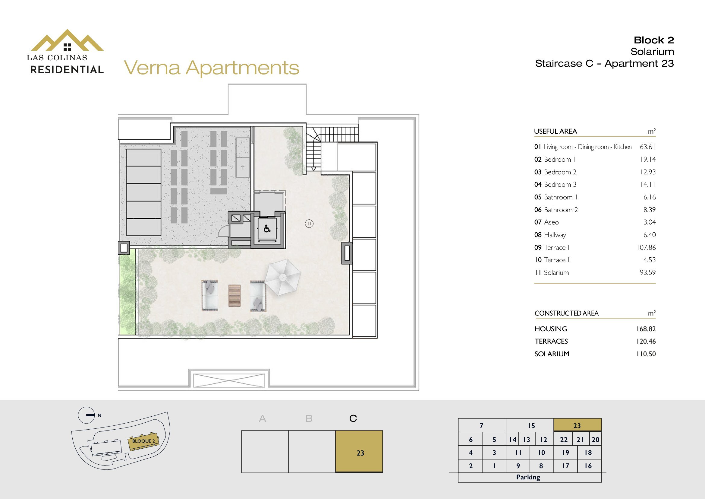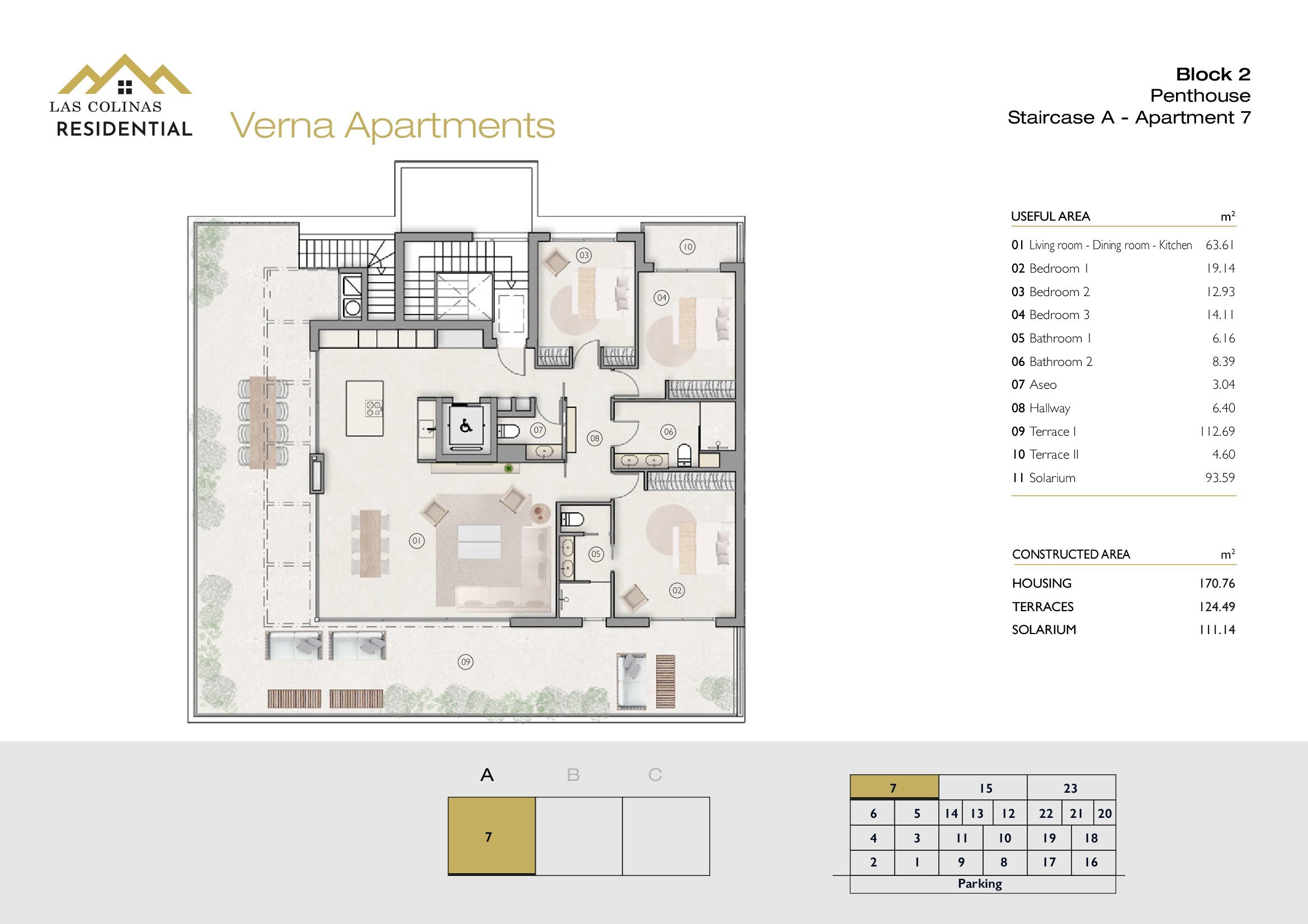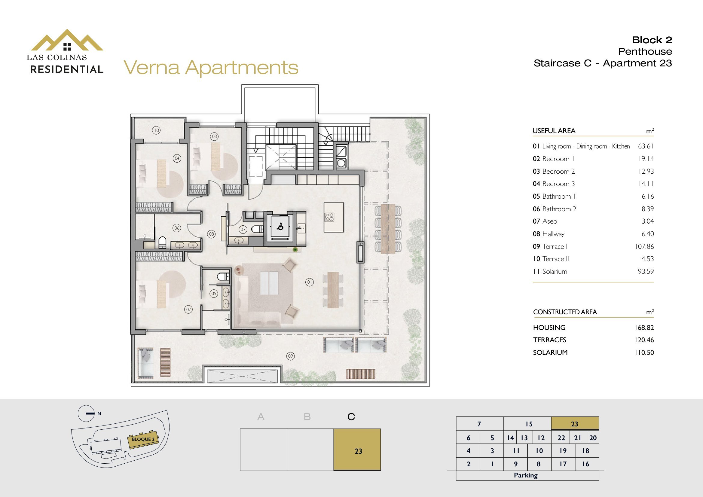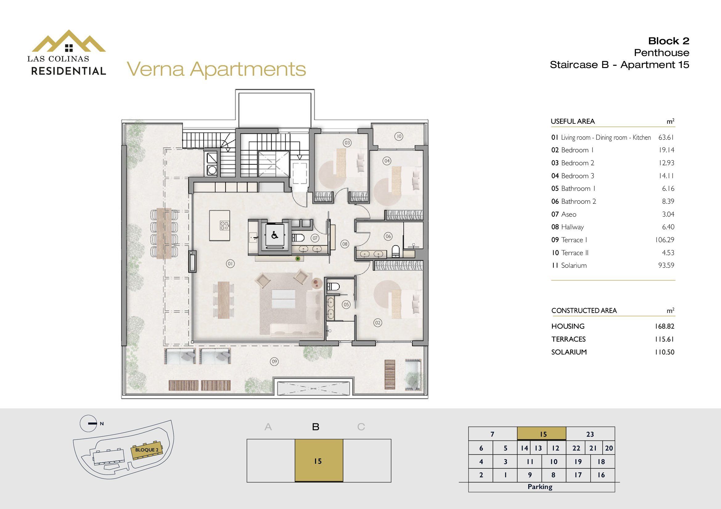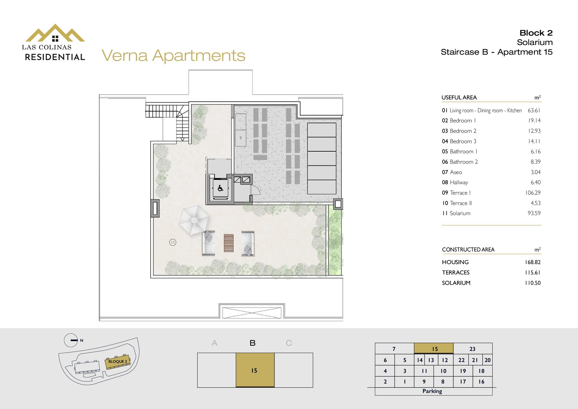 NoFloorBedBathApt m² Terrace m²Garden m²Roof m²Total m²Price € +iva