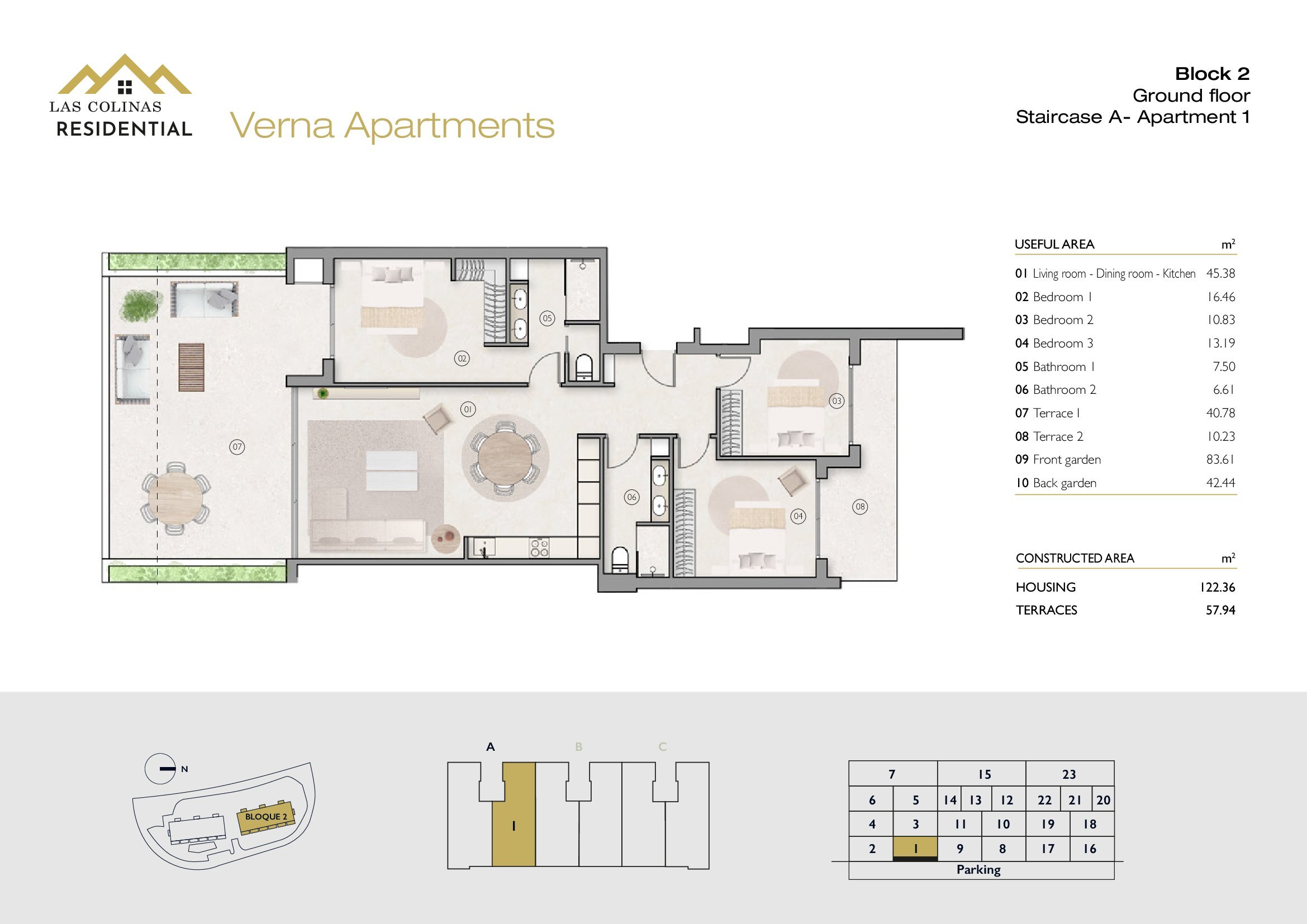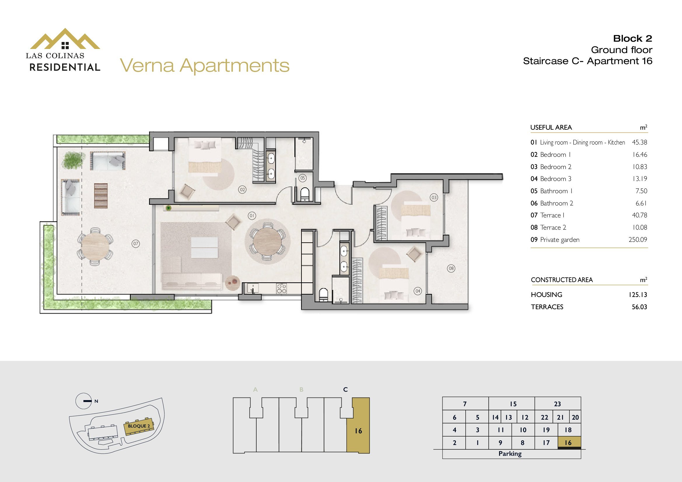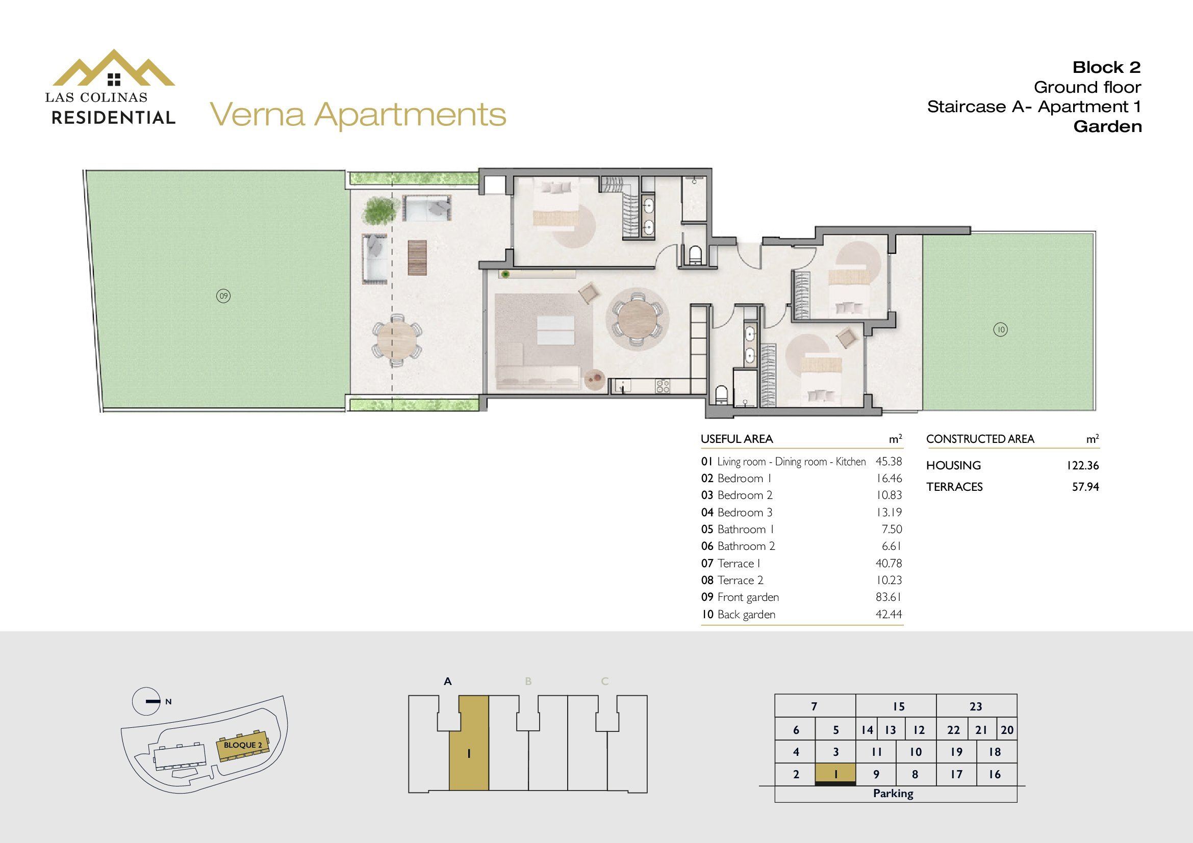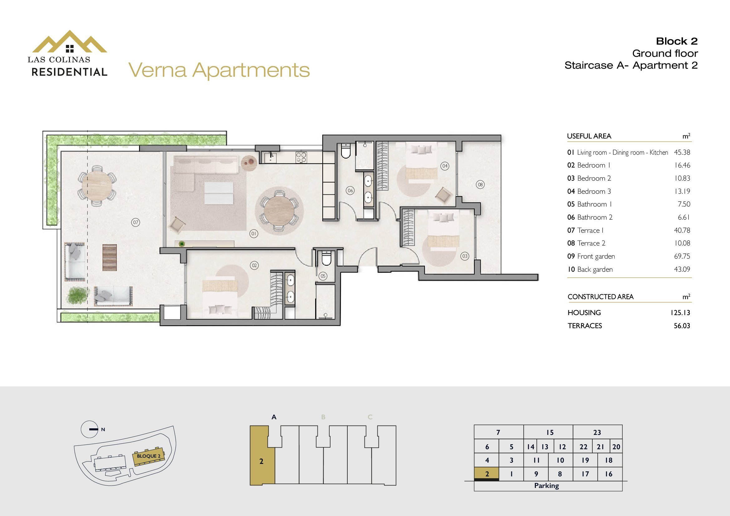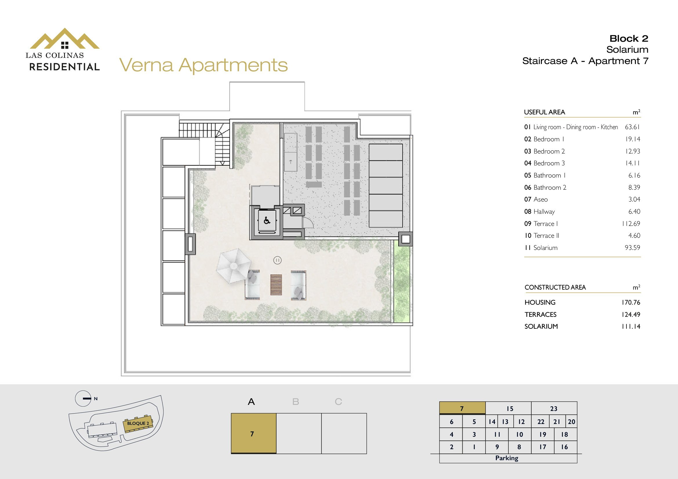 NoFloorBedBathApt m² Terrace m²Garden m²Roof m²Total m²Price € +iva