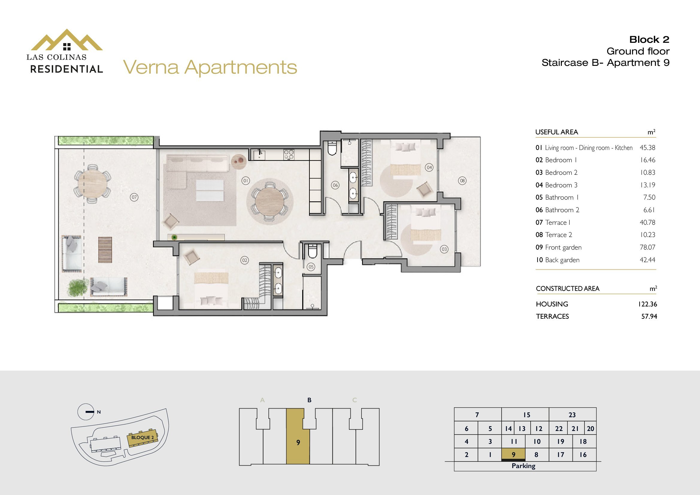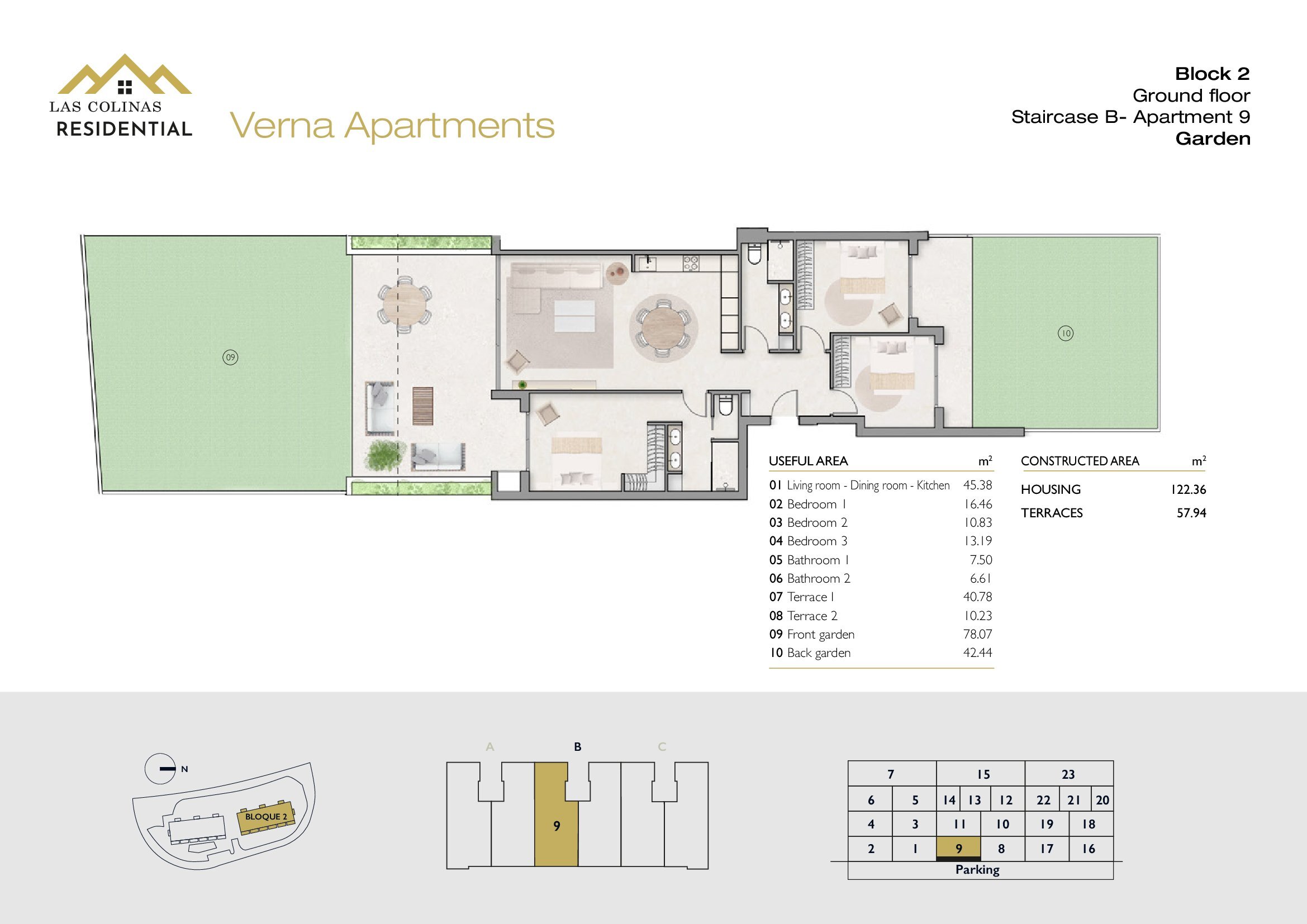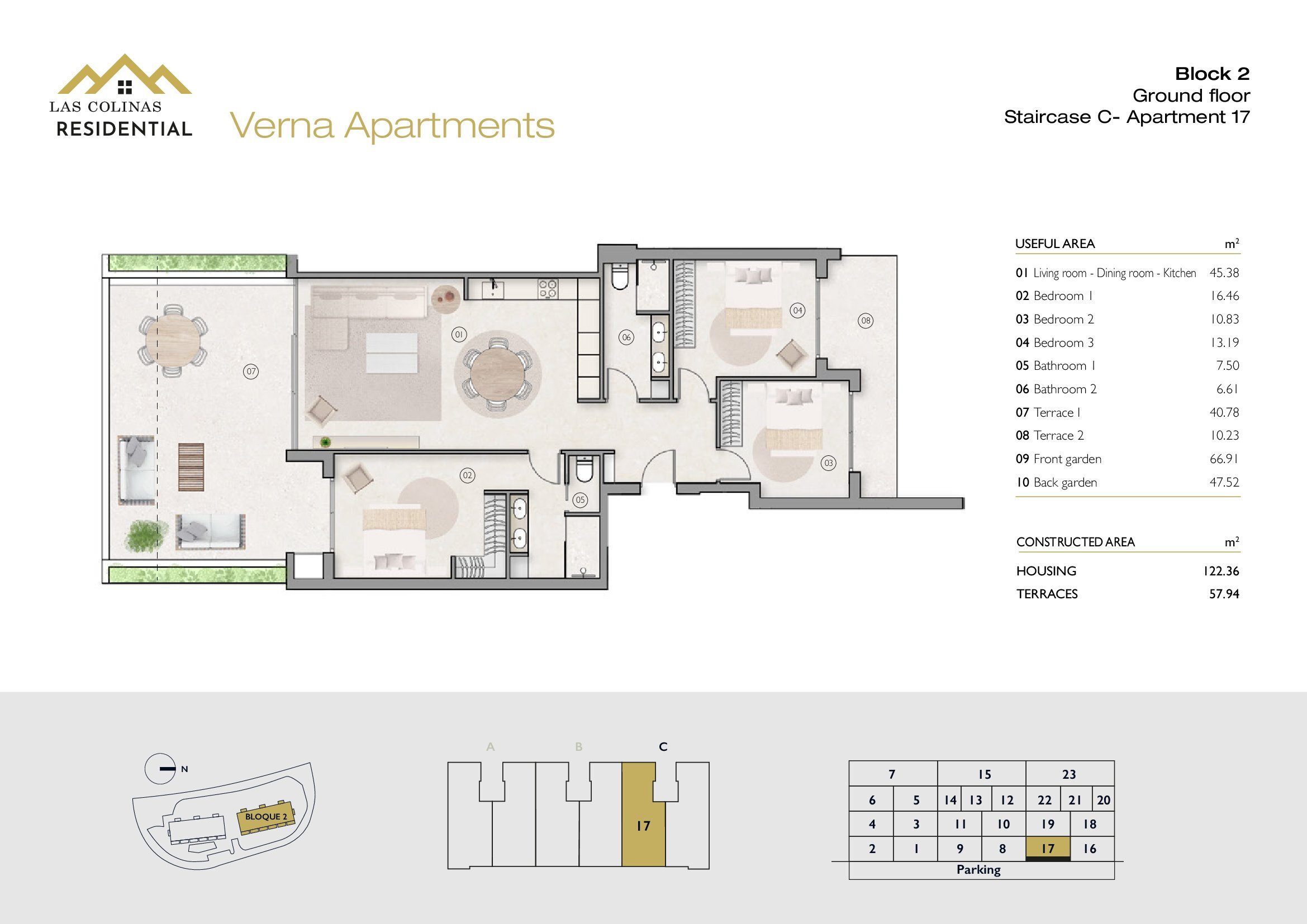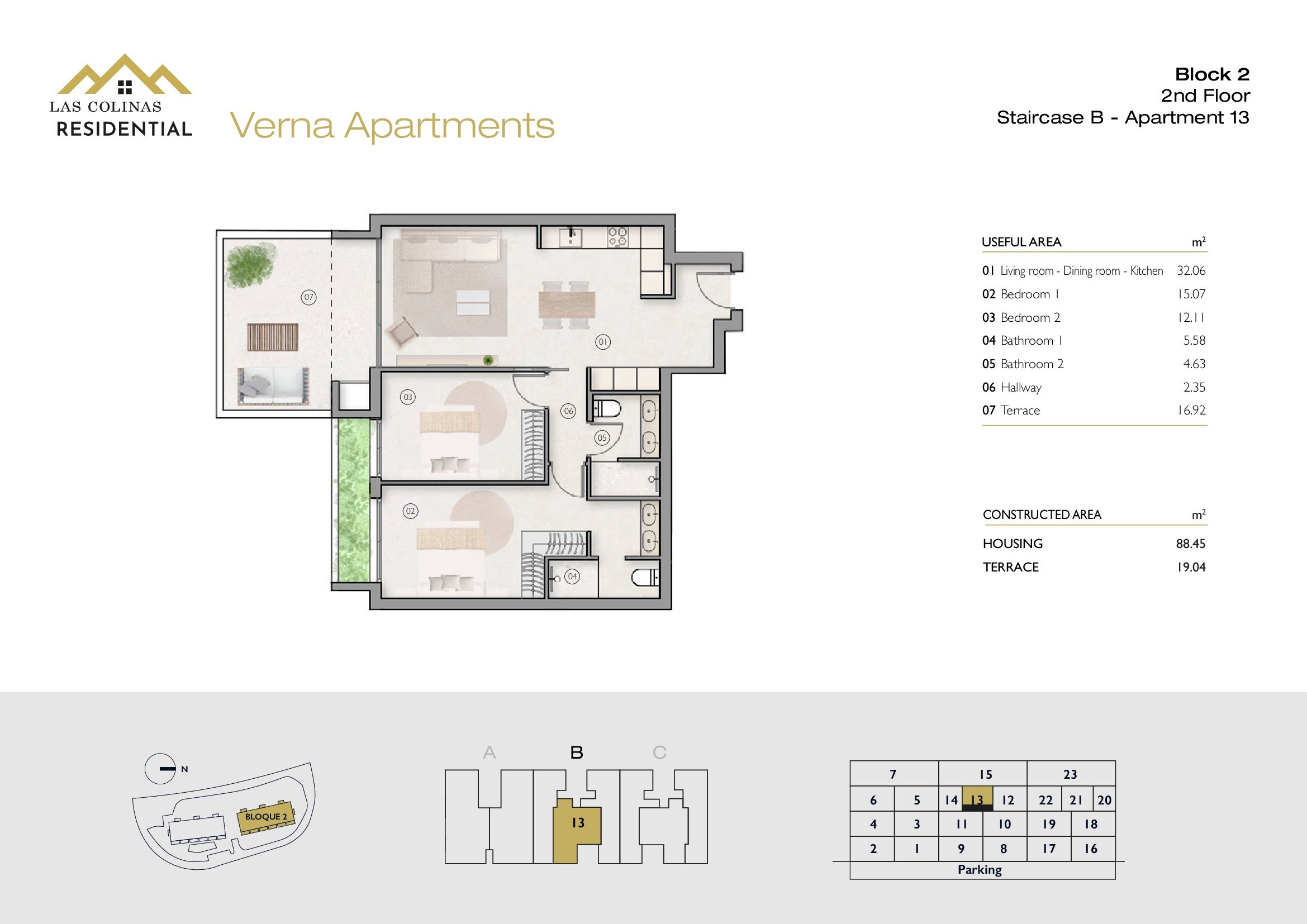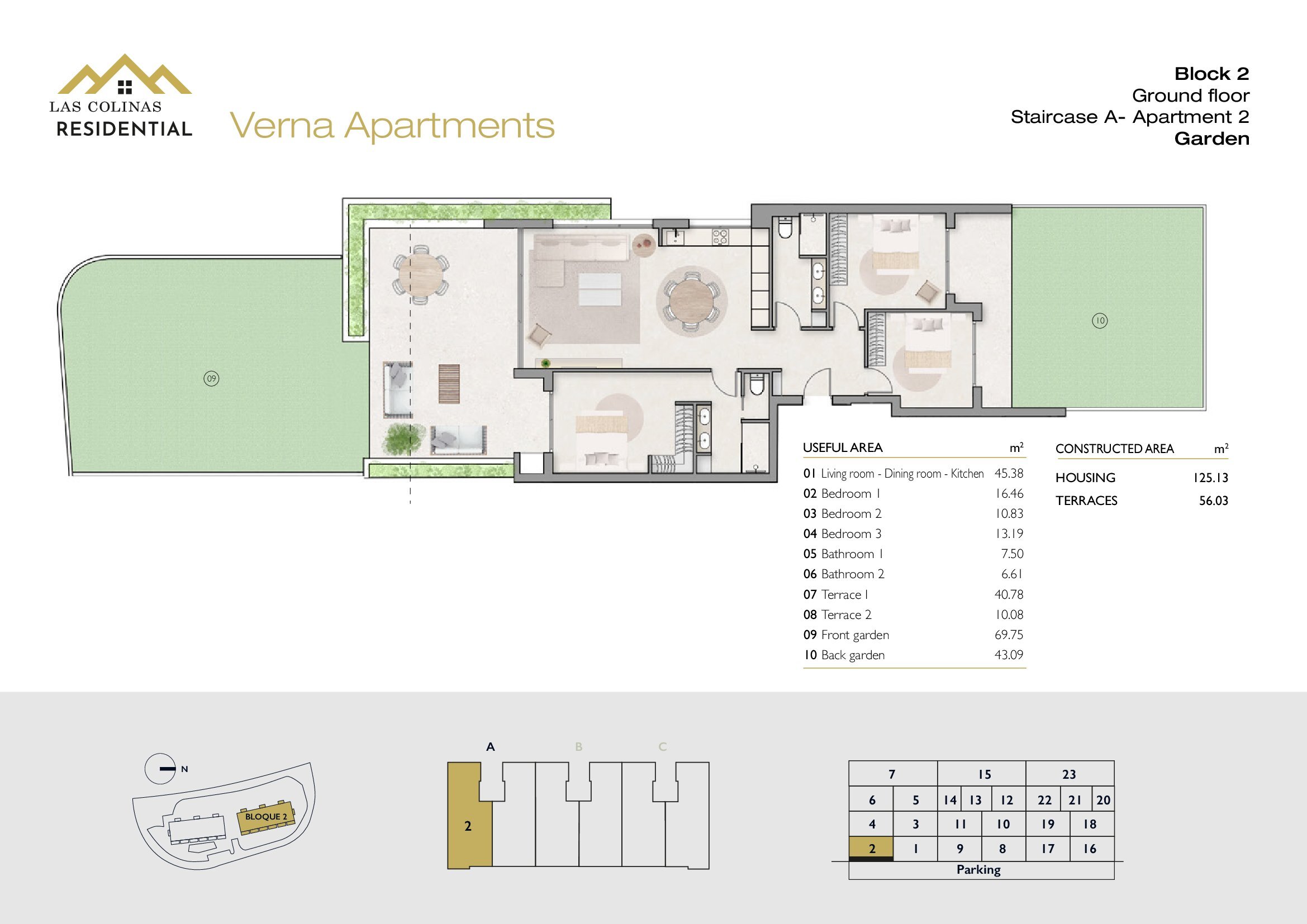 NoFloorBedBathApt m² Terrace m²Garden m²Roof m²Total m²Price € +iva