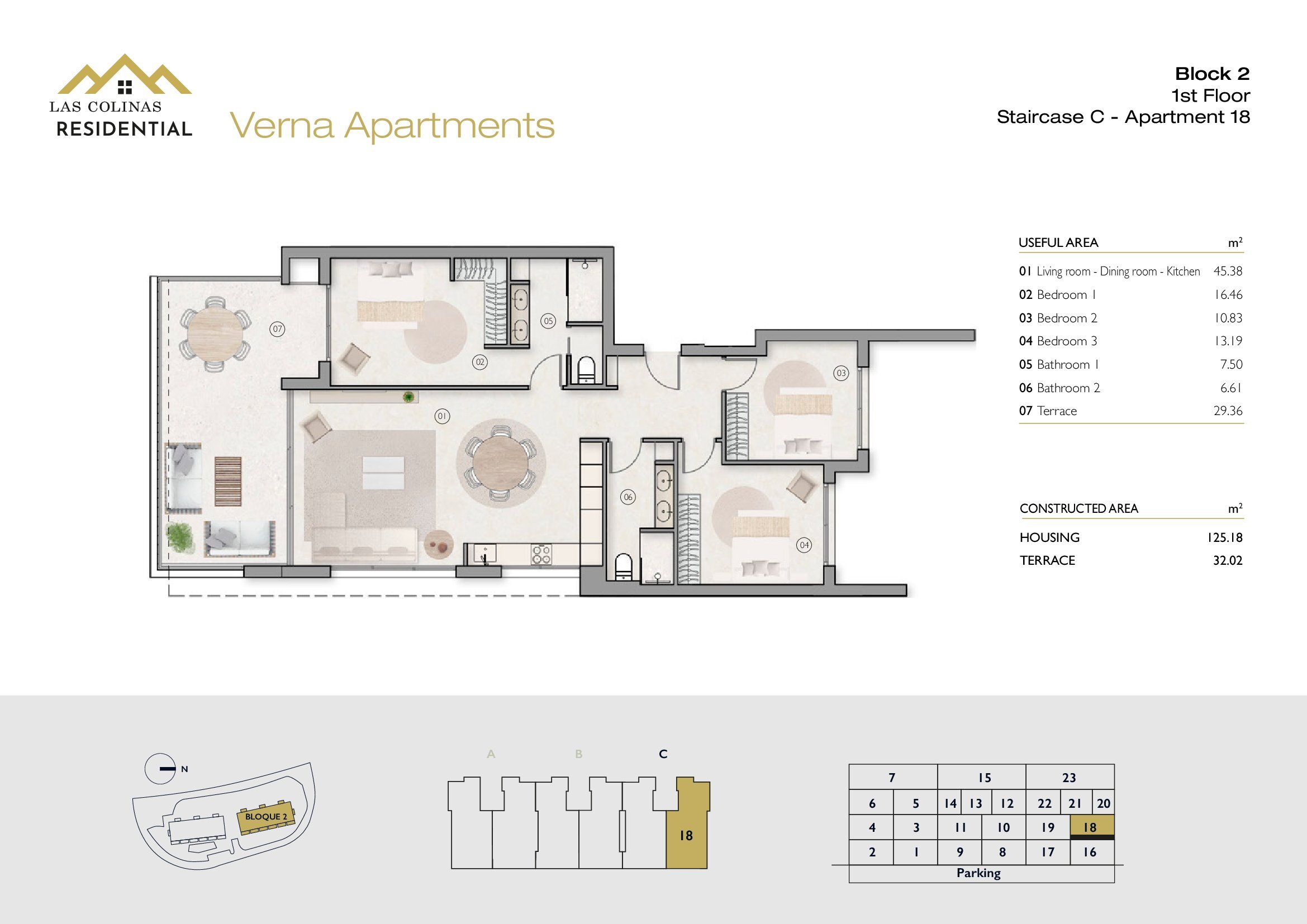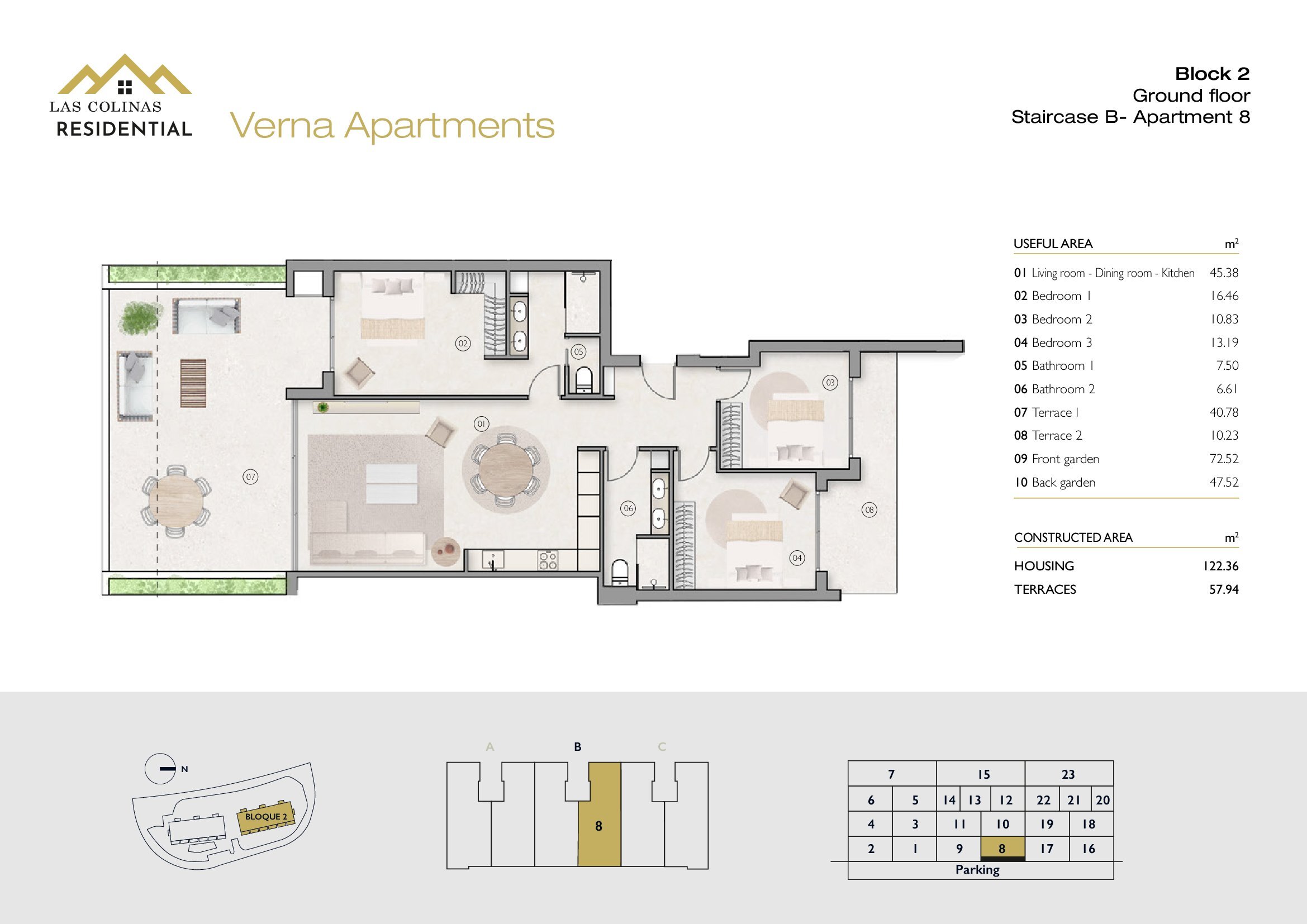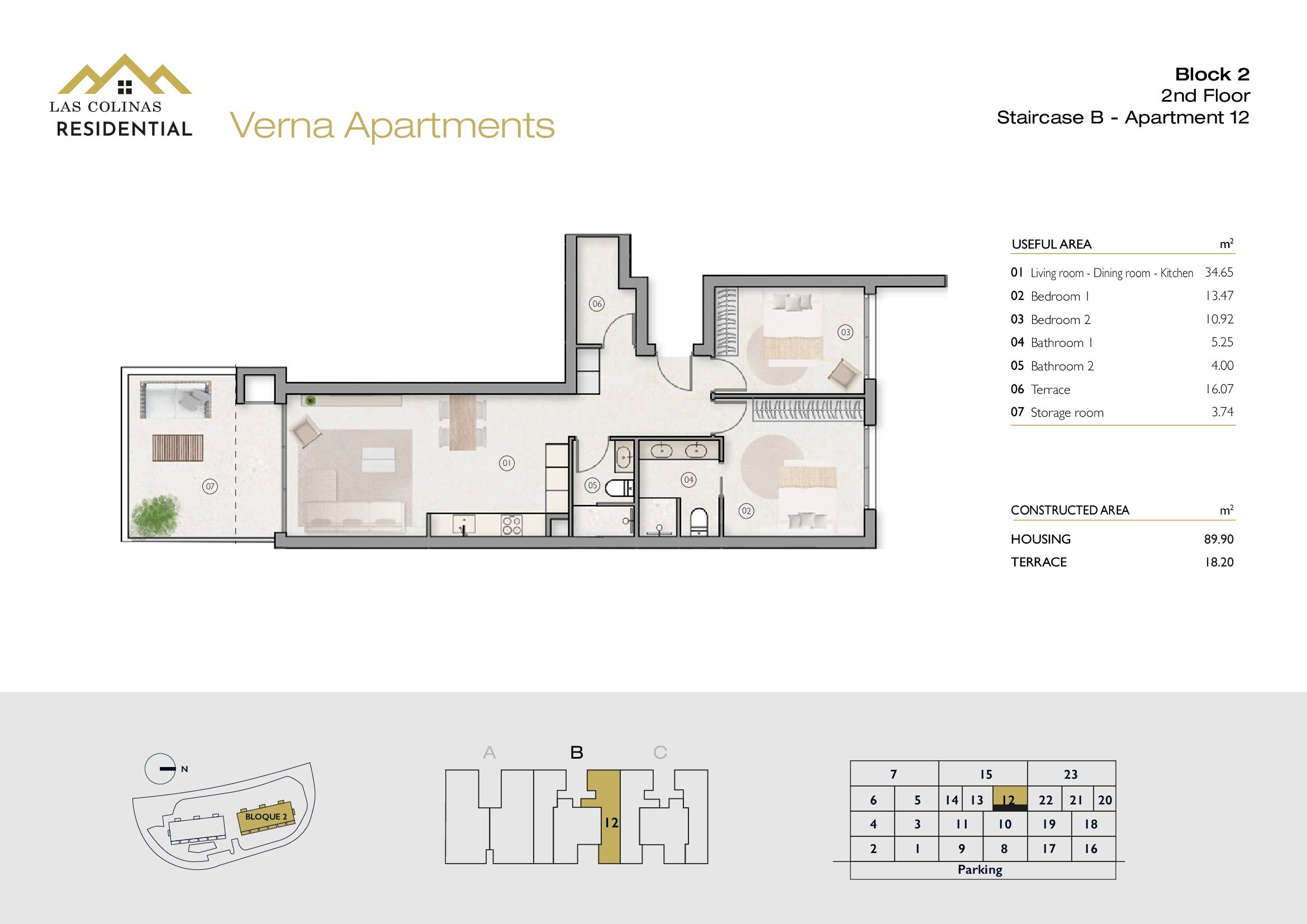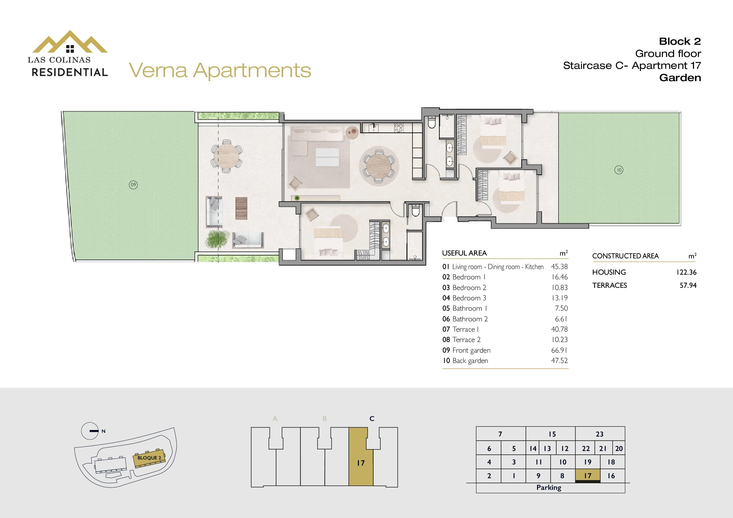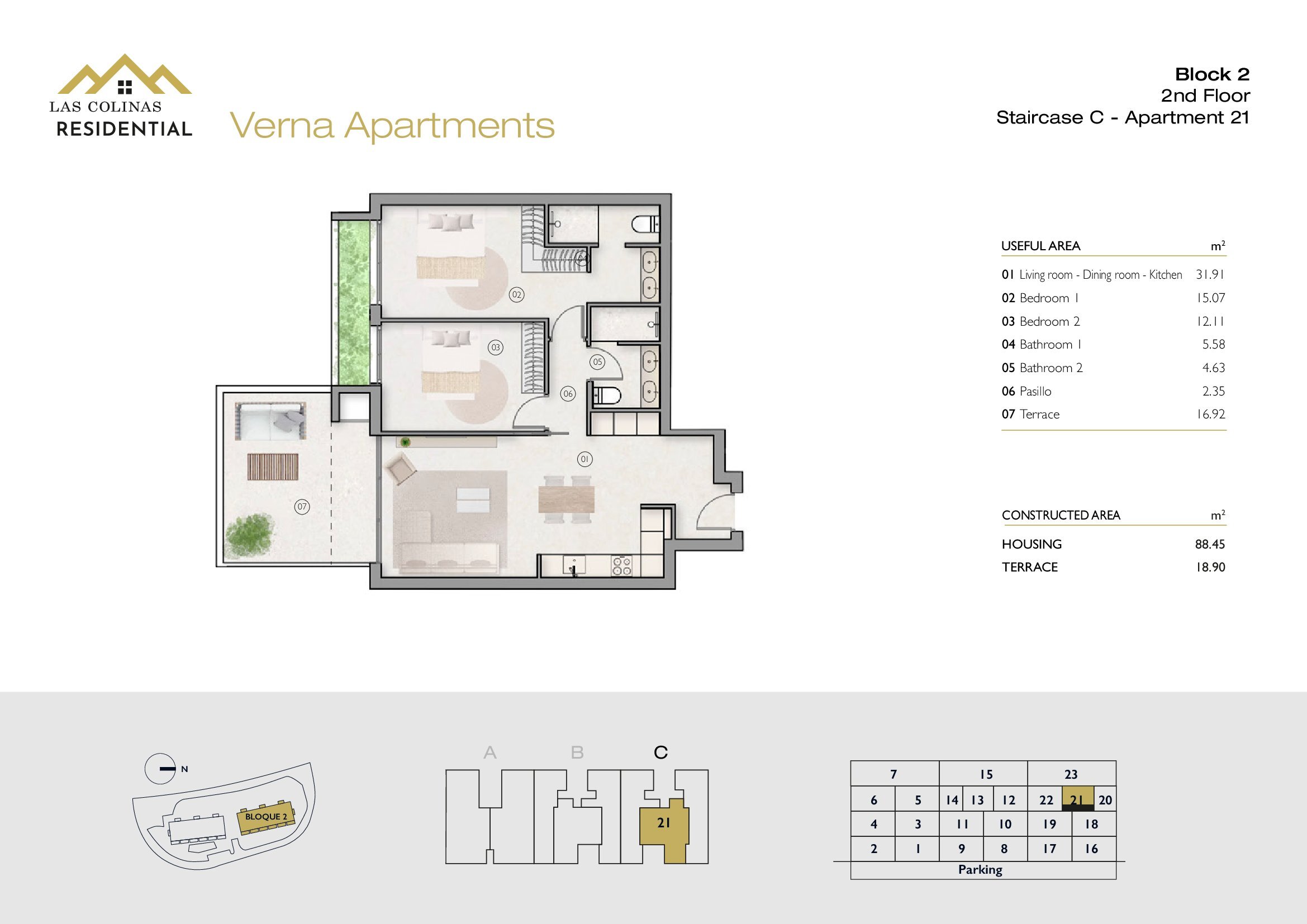NoFloorBedBathApt m² Terrace m²Garden m²Roof m²Total m²Price € +iva