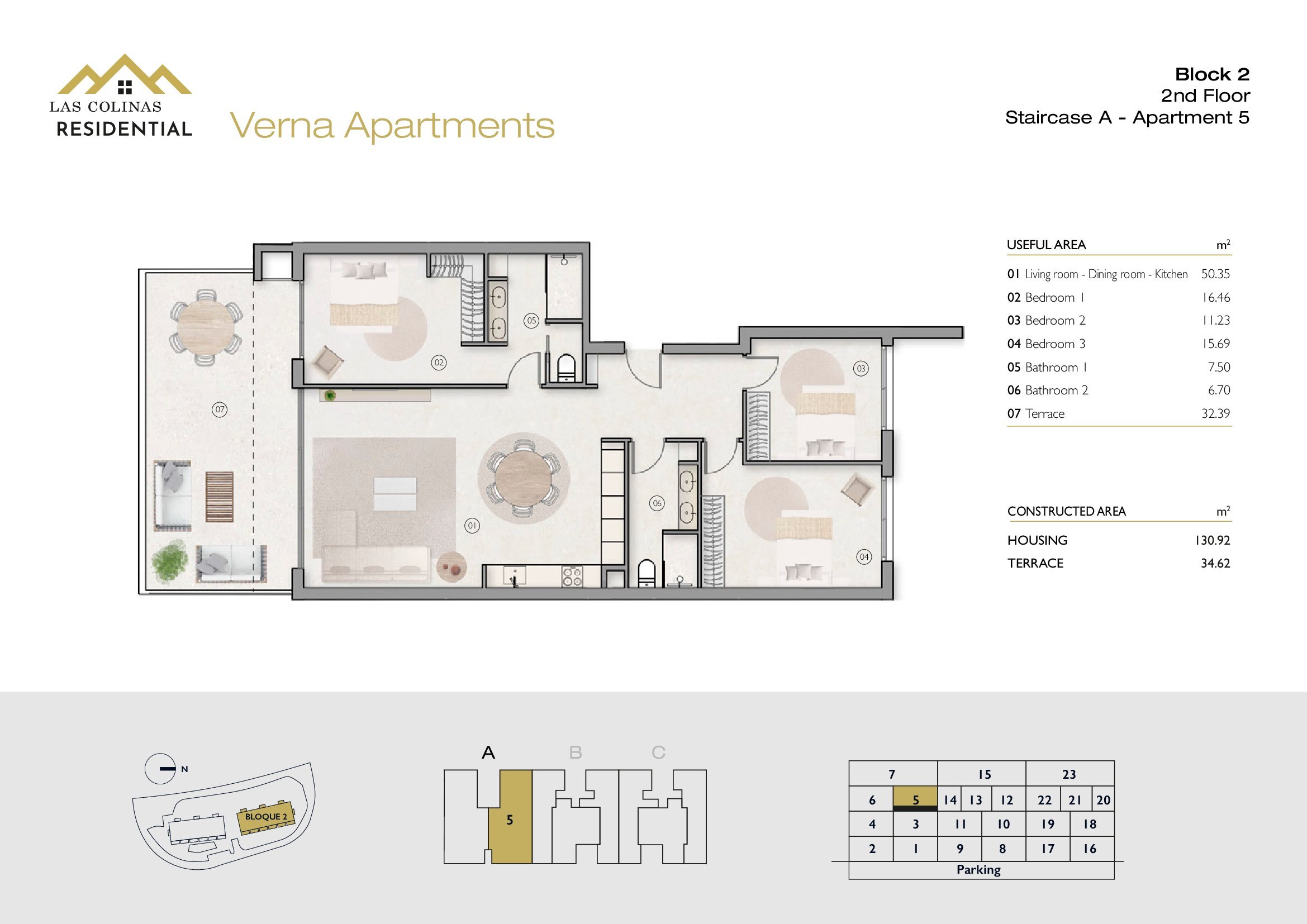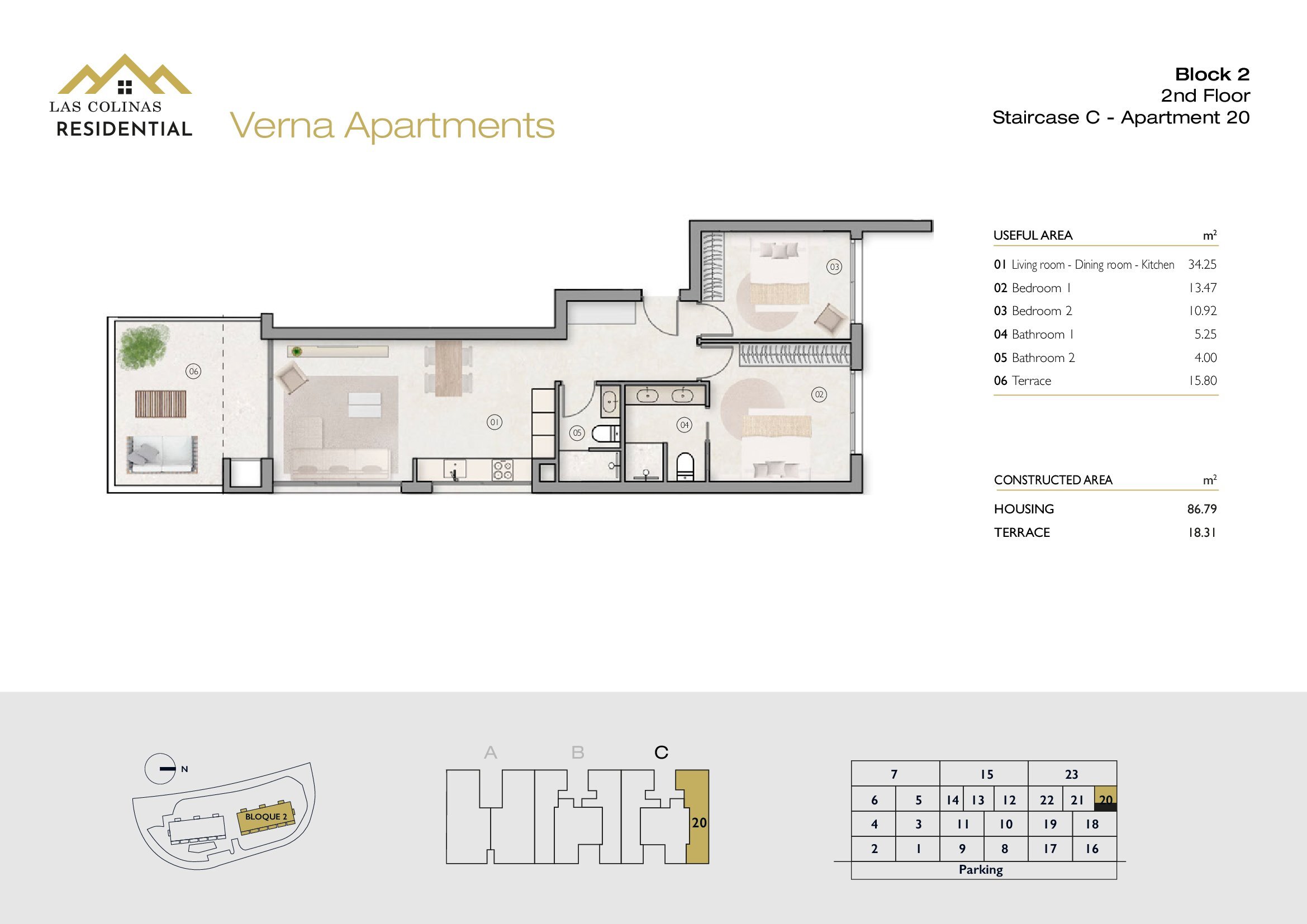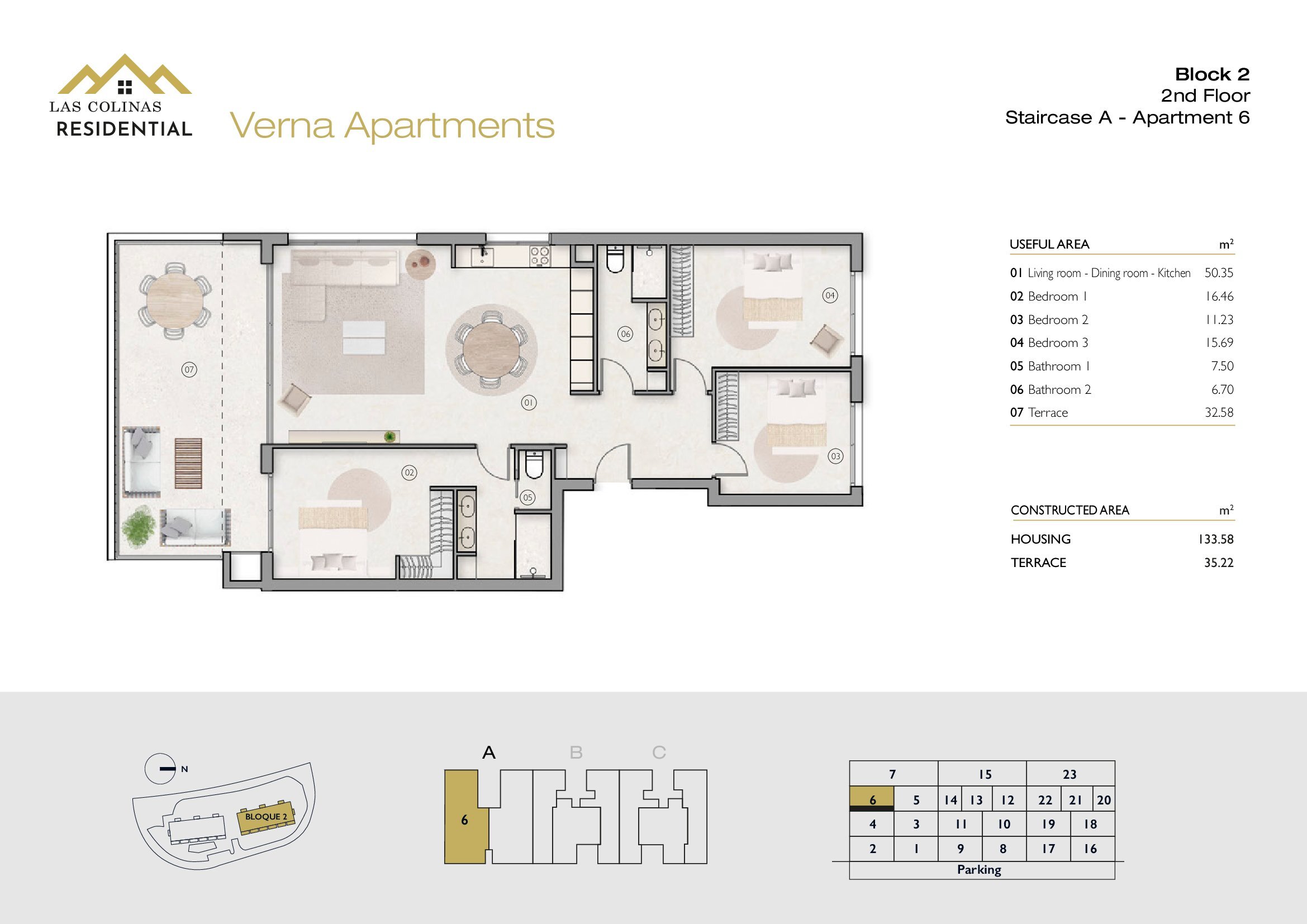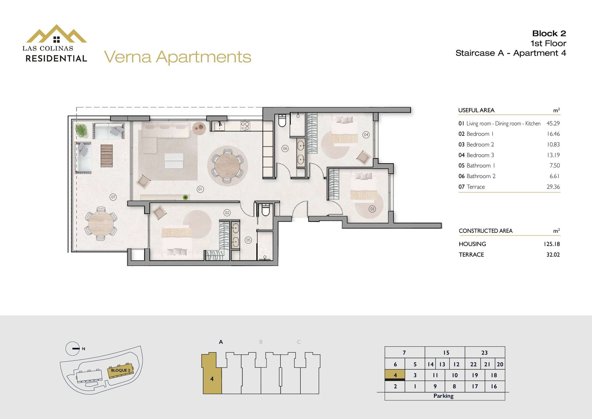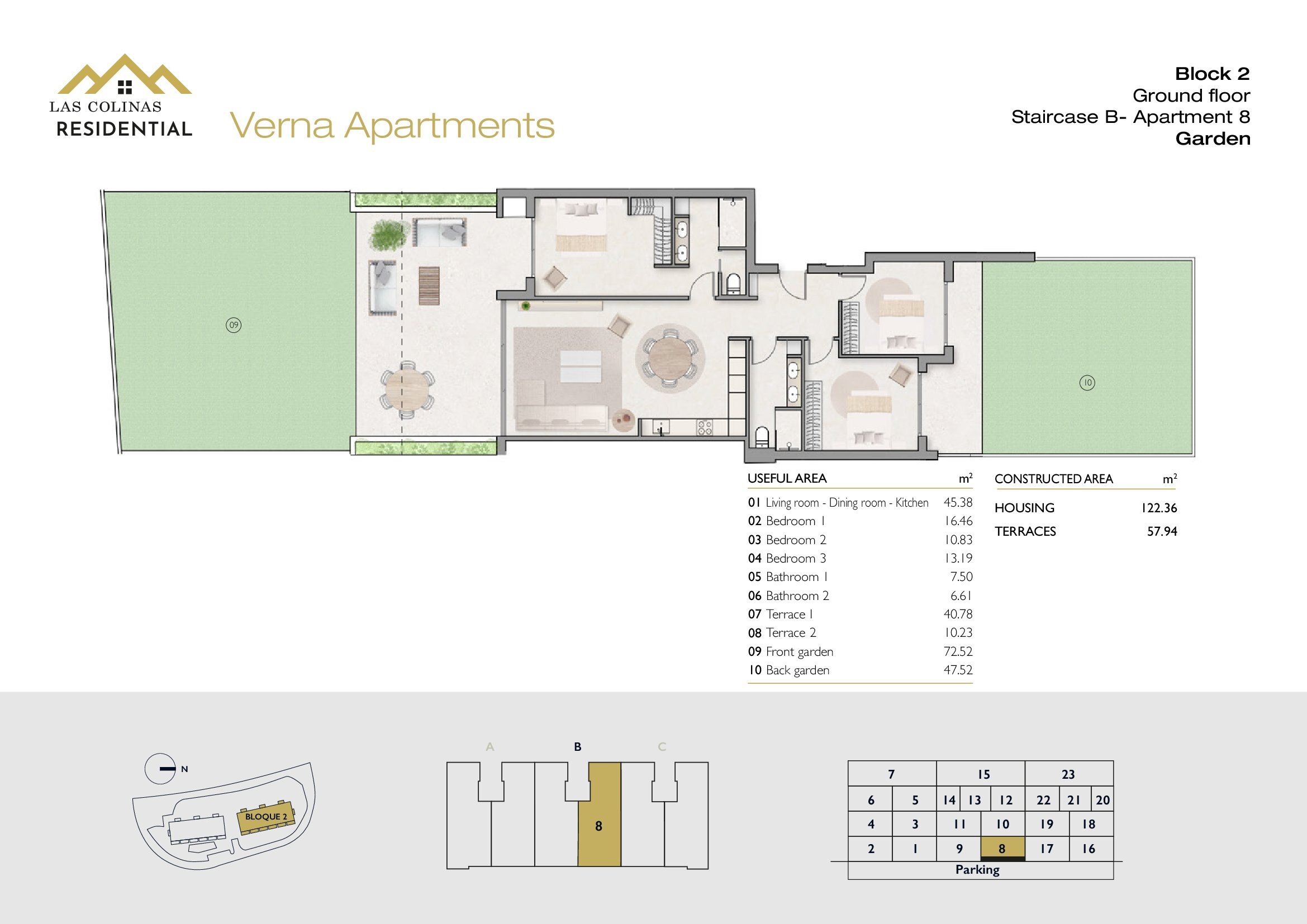 NoFloorBedBathApt m² Terrace m²Garden m²Roof m²Total m²Price € +iva